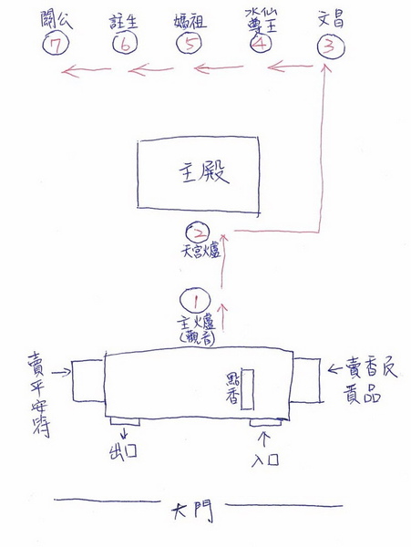 基本上是照著下圖的順序, 每爐一柱香, 依序拜完即完成~
